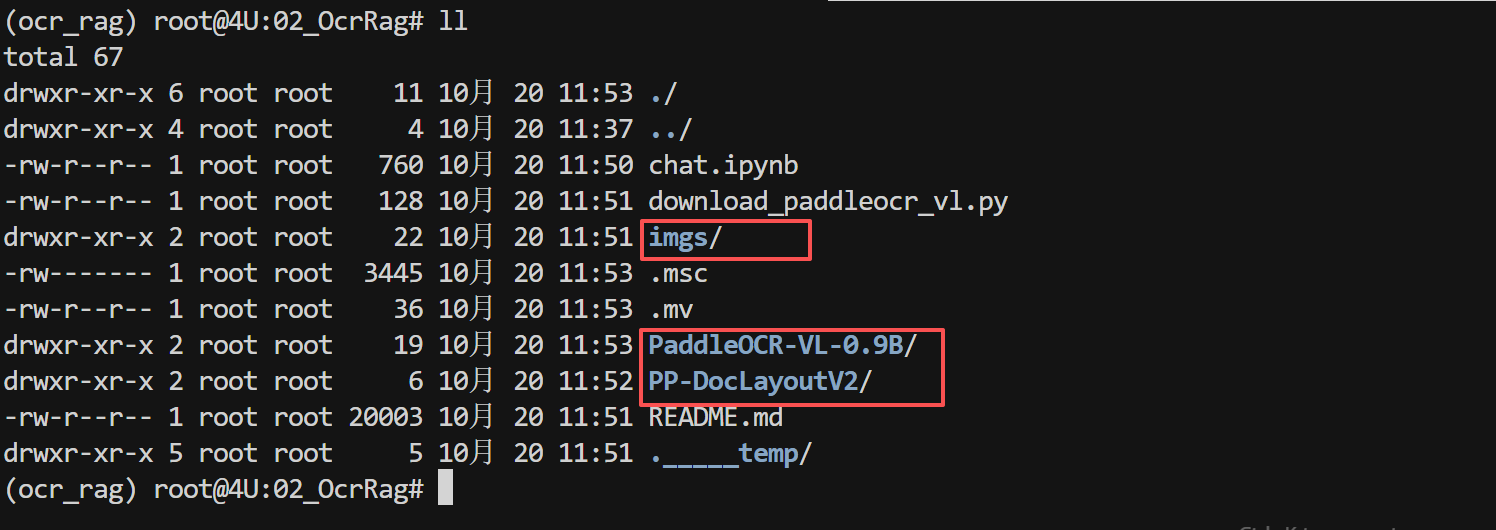 激活成功后,命令行提示符前会显示 (ocr_rag)。