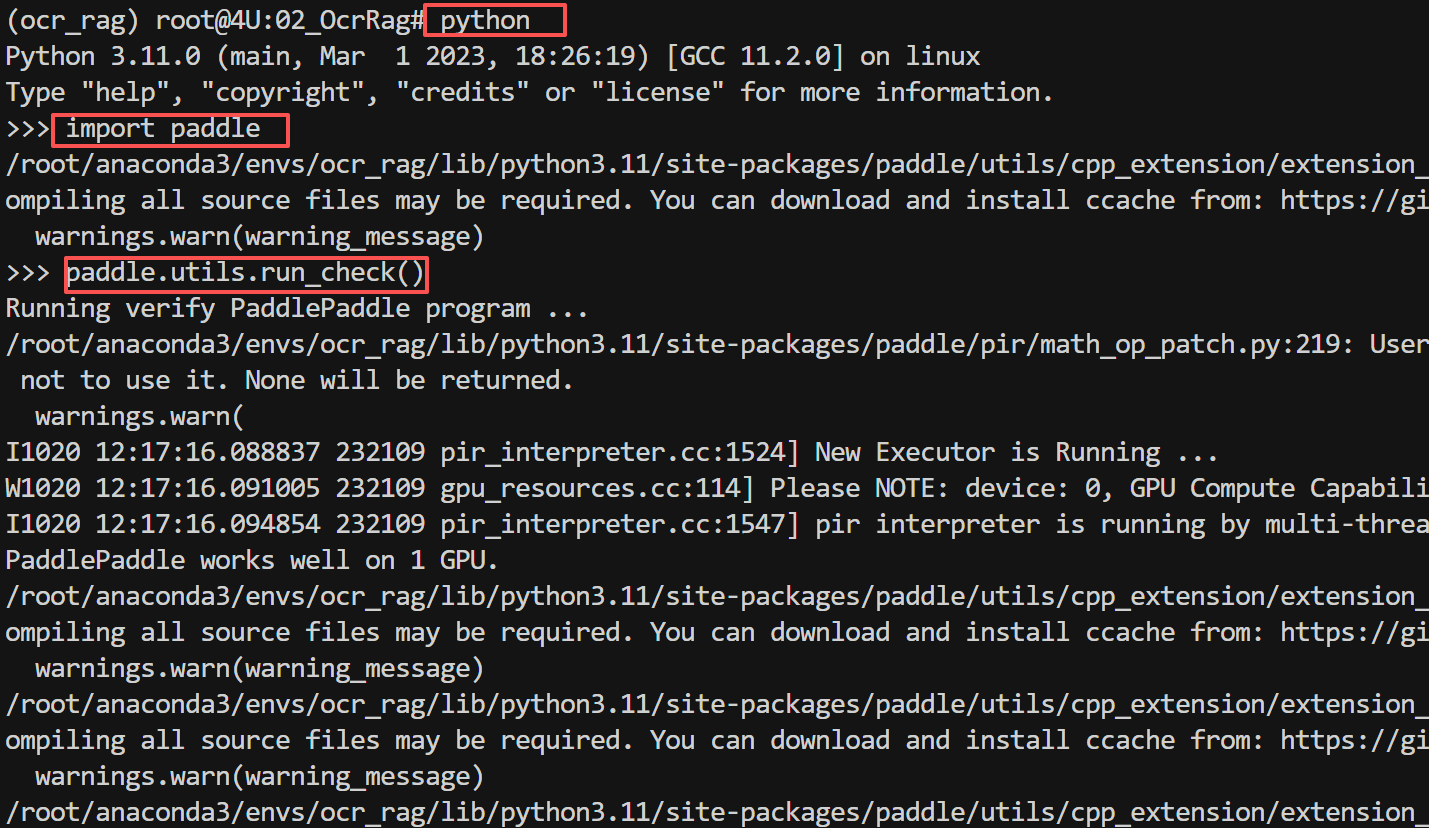 安装完成后,验证PaddlePaddle是否正常工作: