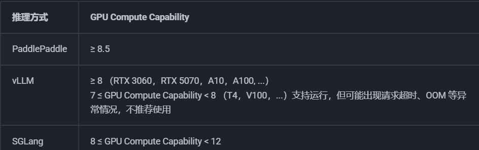 | 原生PaddlePaddle | ≥8.5 (RTX 3090/4090、A100) | 最稳定 |