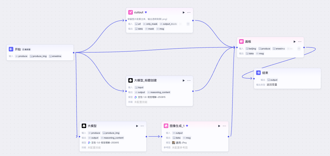 | Coze | 原生强调多模态,带有prompt模板、agent决策 | 海报/短视频/商品卖点流水线 |