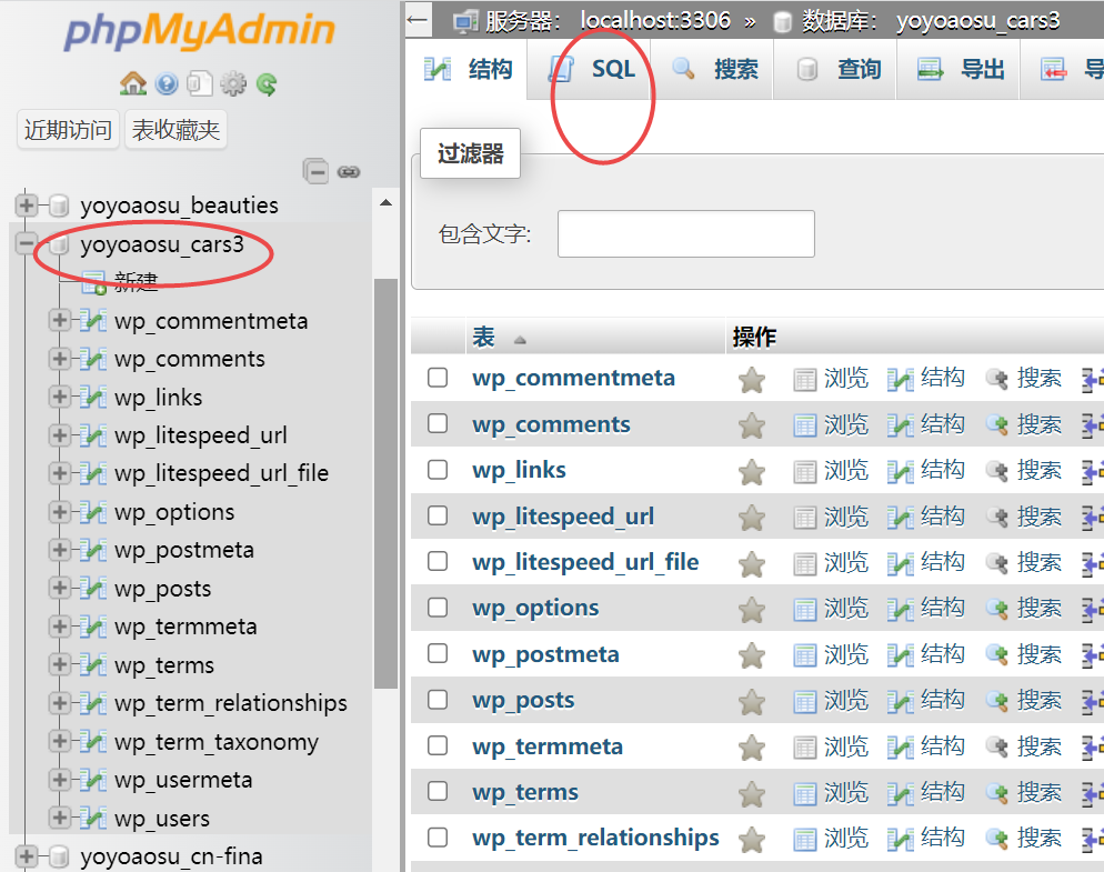 接着打开网站的数据库,进入网站数据库的SQL功能项!