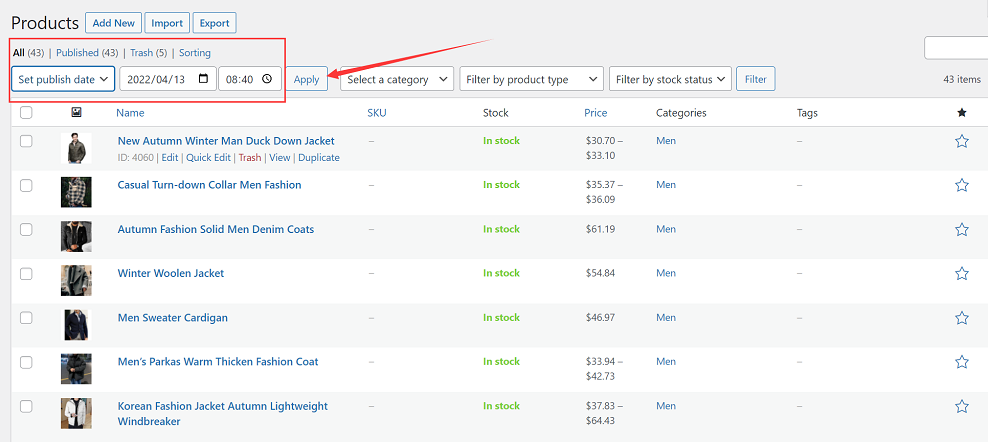 首先安装 “Bulk edit publish date”插件并启用,启用了之后进入文章编辑或者管理页面,咱们在合适的地方进行勾选进行修改就行了。这个插件的上手难度很低,基本上安装完了就会用了。