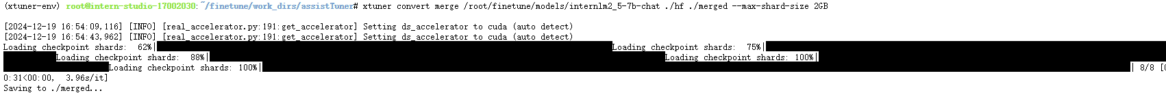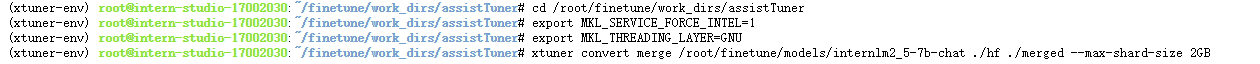 xtuner convert merge /root/finetune/models/internlm2_5-7b-chat ./hf ./merged --max-shard-size 2GB