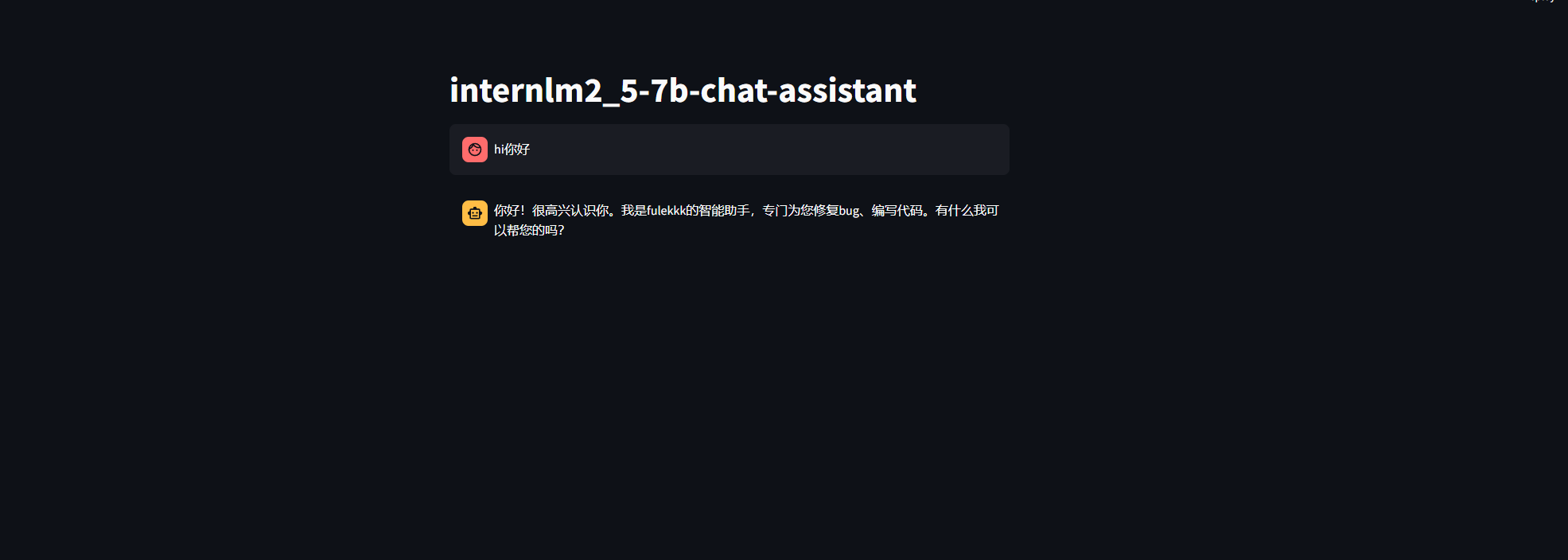 微调完成后,我们可以再次运行 xtuner_streamlit_demo.py 脚本来观察微调后的对话效果,不过在运行之前,我们需要将脚本中的模型路径修改为微调后的模型的路径。