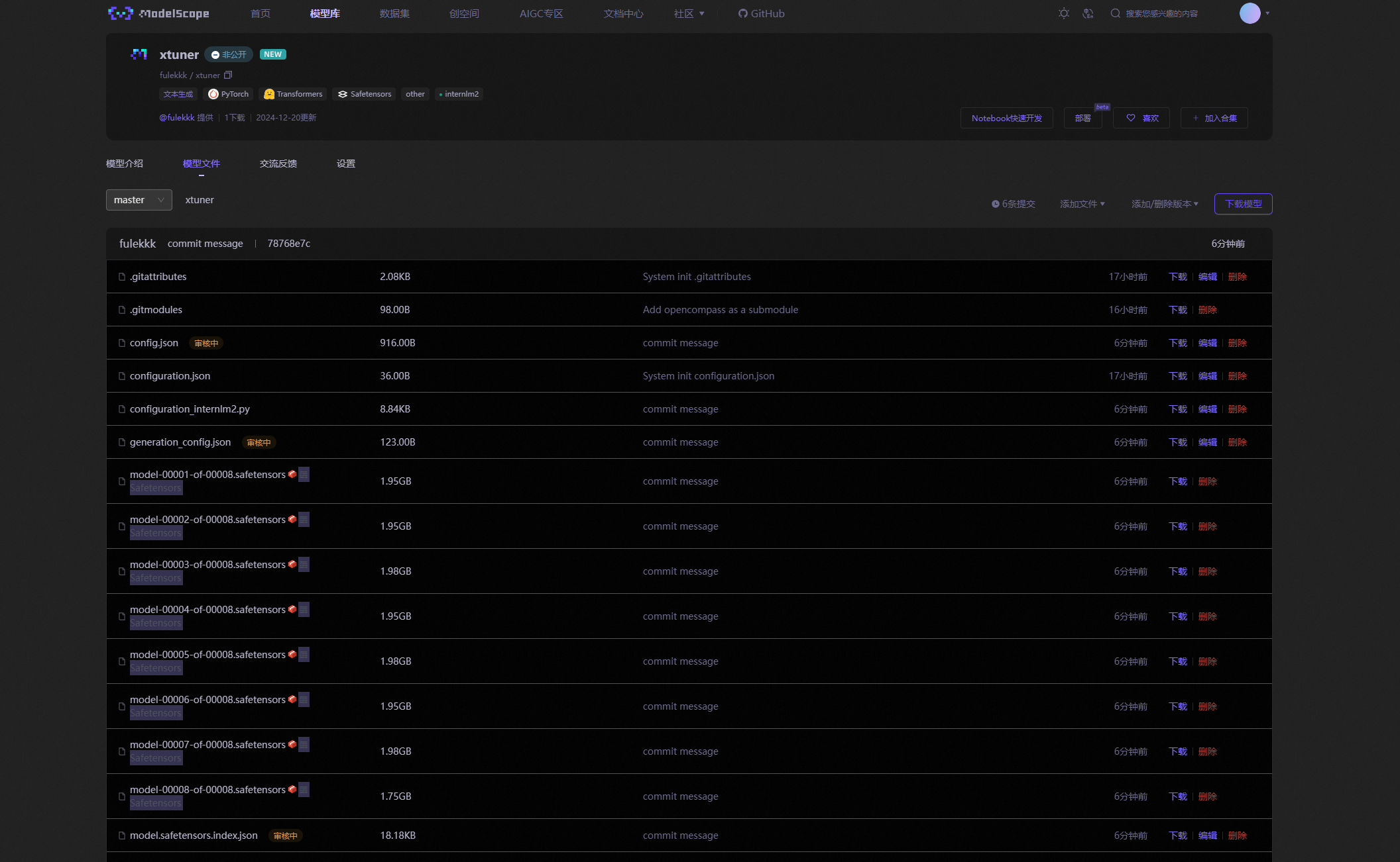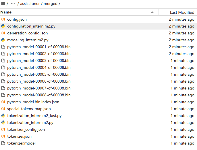 在模型合并完成后,我们就可以看到最终的模型和原模型文件夹非常相似,包括了分词器、权重文件、配置信息等等。