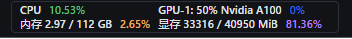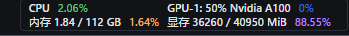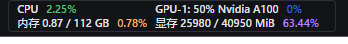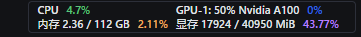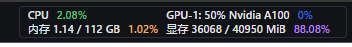 因此,50% A100 的开发机显存减少了10.4 GB。