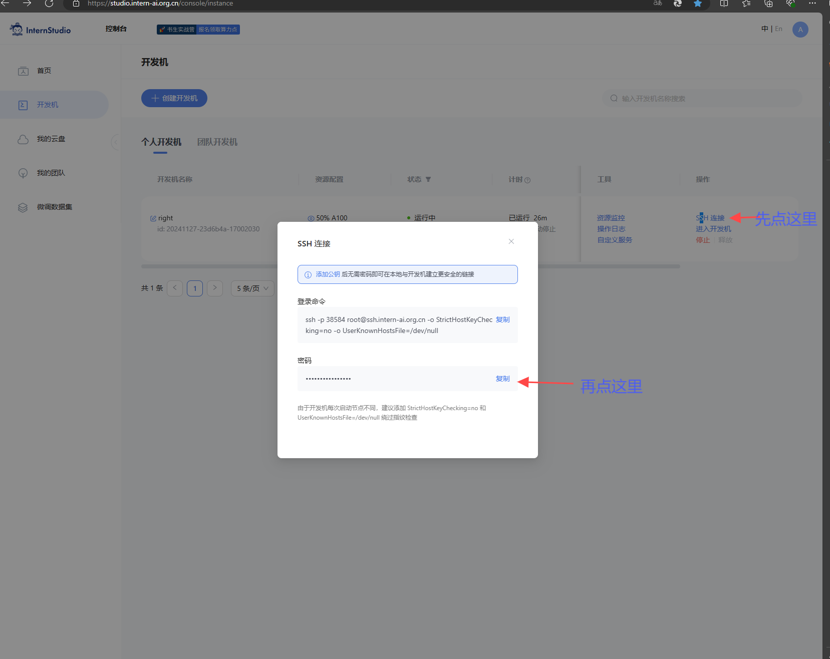 关闭http://127.0.0.1:23333网页,但保持终端和本地窗口不动,在开发机里新建一个终端。