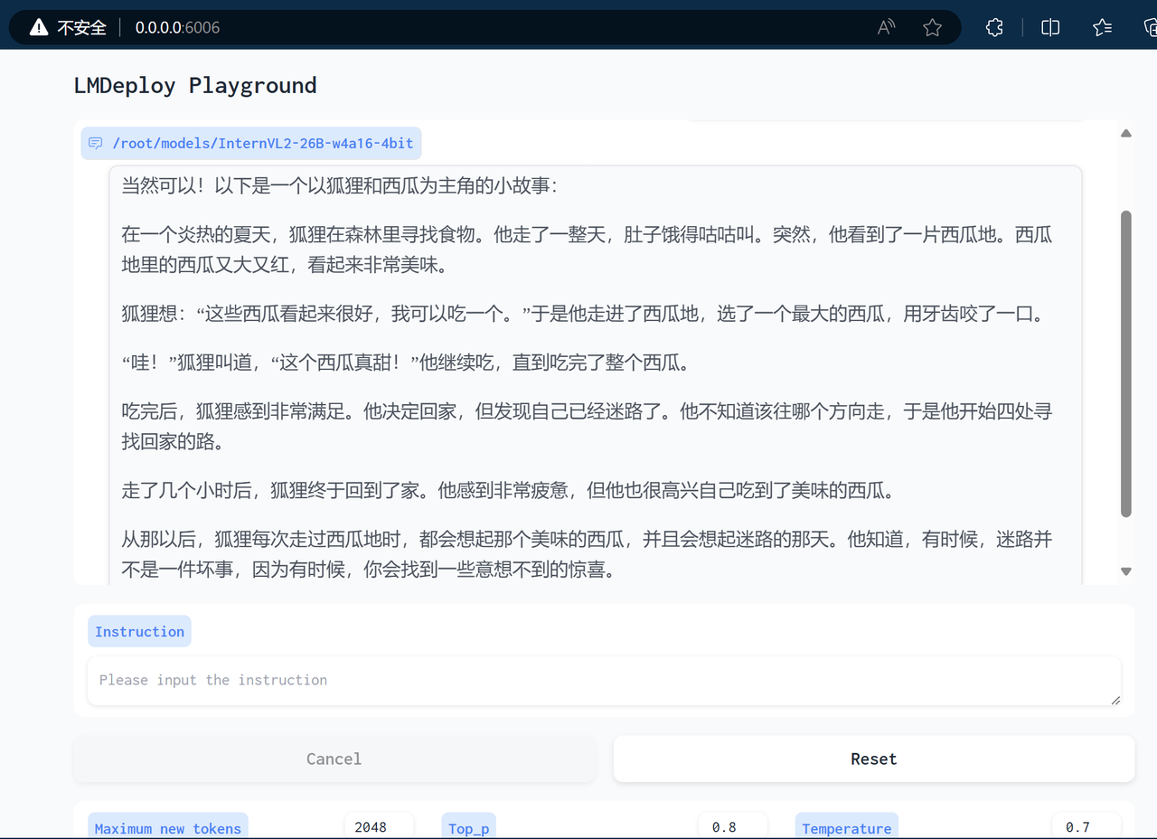 lmdeploy chat /root/models/internlm2_5-7b-chat --cache-max-entry-count 0.4