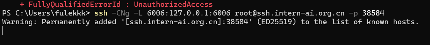 ssh -CNg -L 23333:127.0.0.1:23333 root@ssh.intern-ai.org.cn -p 你的ssh端口号