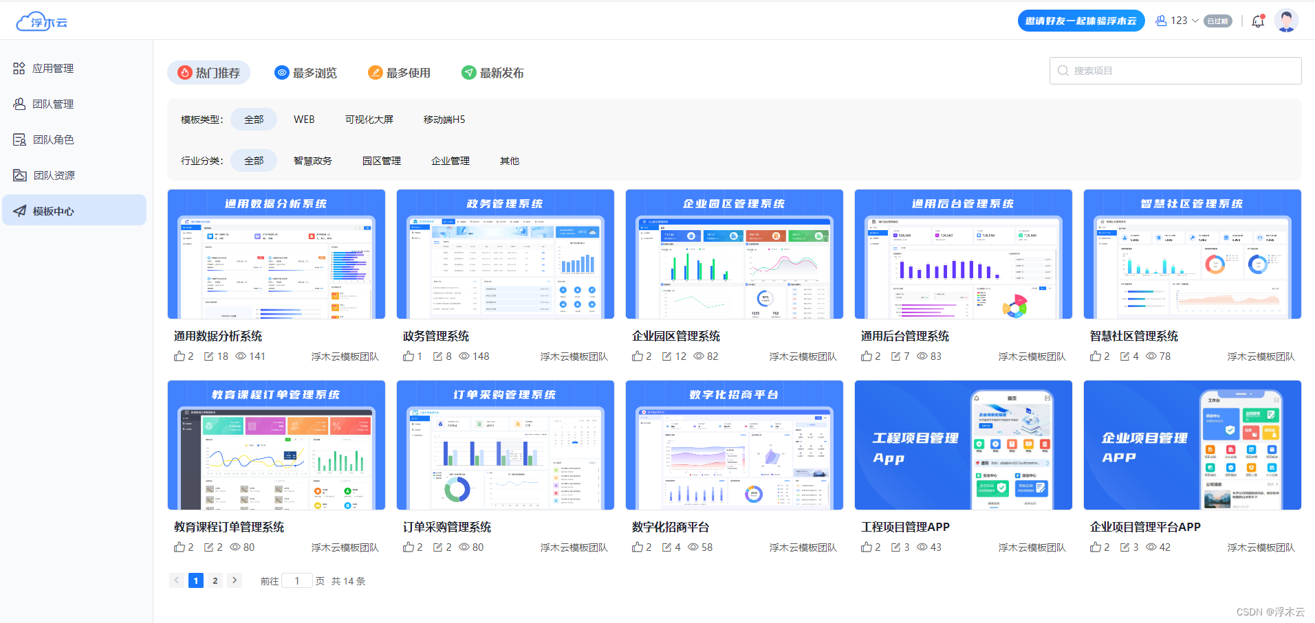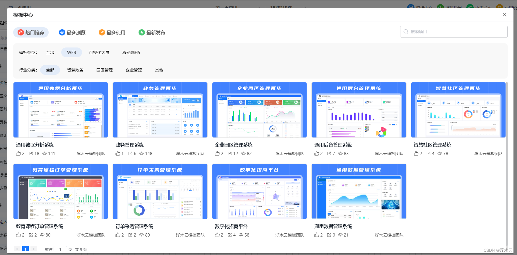浮木云建立了自己的素材广场,并在素材广场开放了各行业分类的入口,以及多端的模板,可快速定位你的需求。