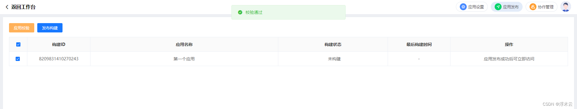 在构建之前可以选中并进行应用校验,如果成功,则会出现如下所示