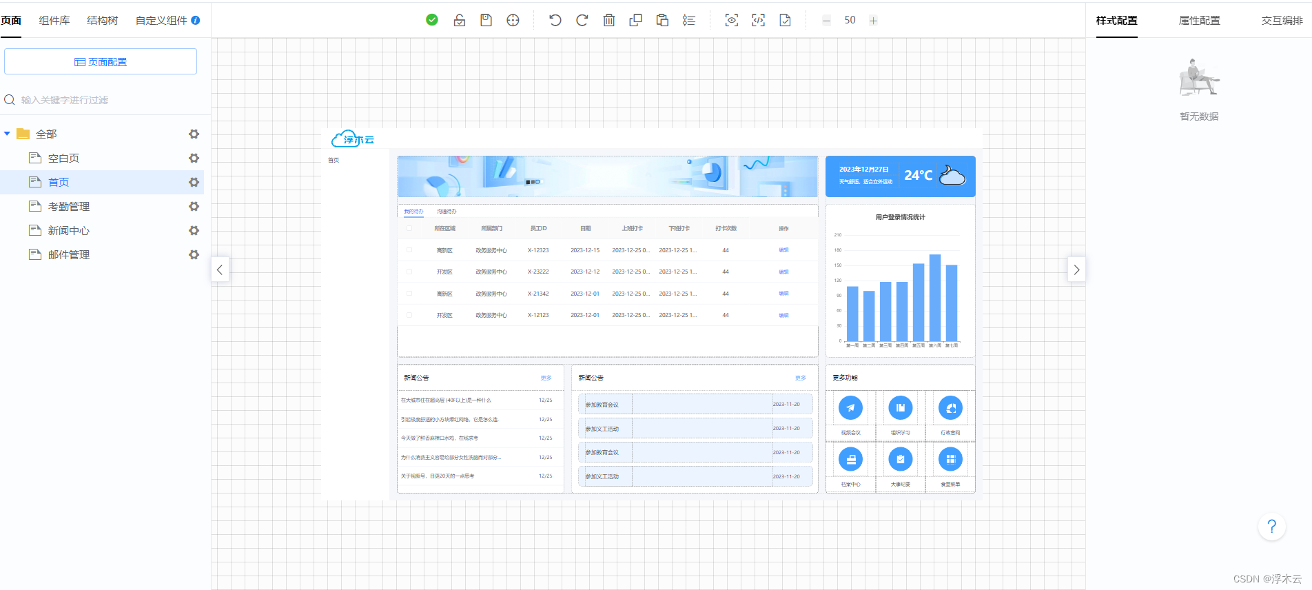浮木云是一款打通产设研团队,实现原型设计,一键部署,并支持代码导出的一体化的在线应用构建工具。