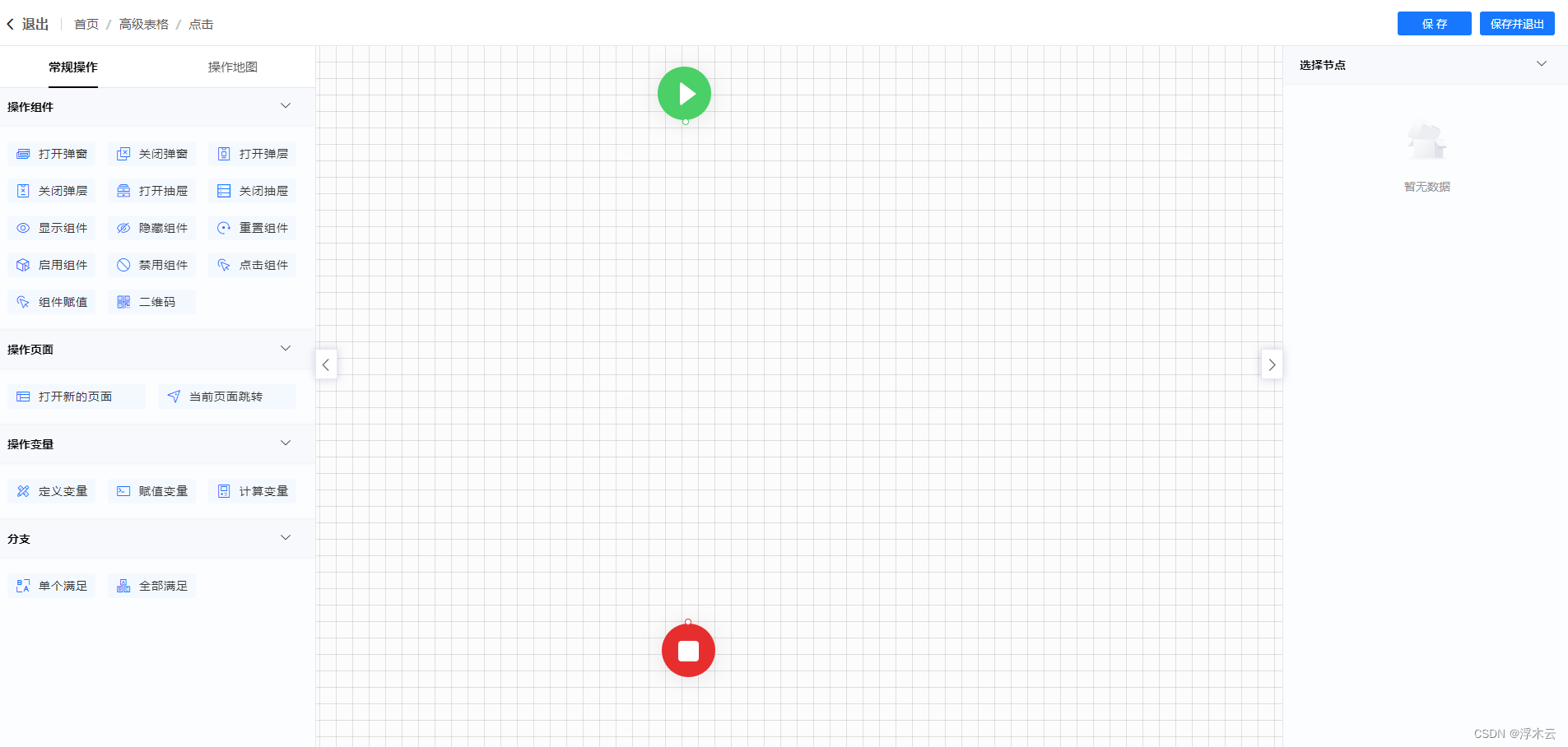 浮木云页面编辑页面交互的方式为事件编排,可以帮你很快的理清逻辑,根据需求快速构建页面的交互方式,实现页面数据的编辑联动以及多页面之间的协作跳转和数据传输