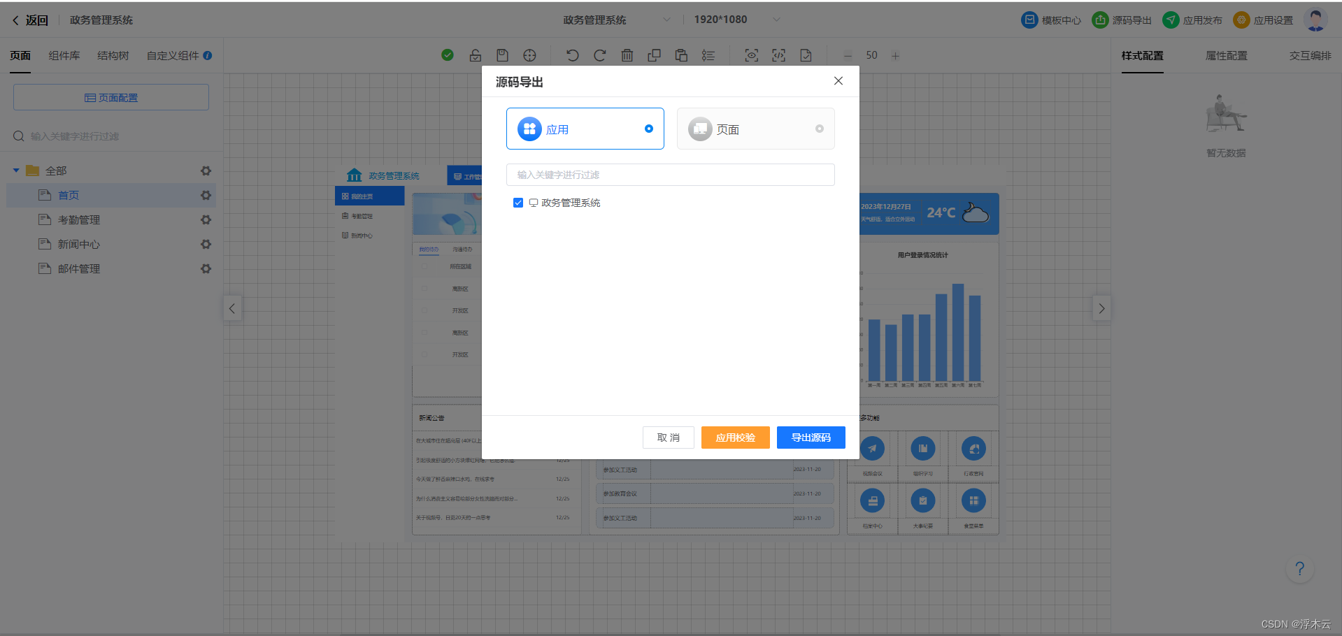 在右上角选择源码导出,对整个应用的代码进行导出(这里也支持校验)
