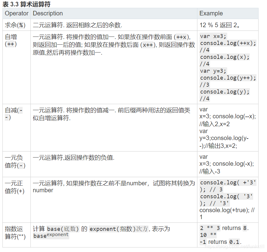 JavaScript有以下表达式类型:
