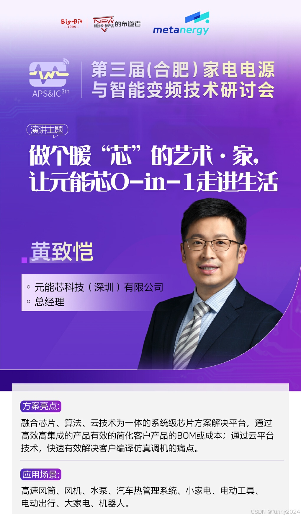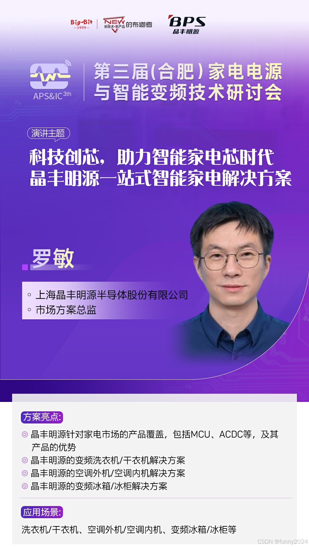 晶丰明源的市场方案总监罗敏将带来《科技创芯,助力智能家电芯时代——晶丰明源一站式智能家电解决方案》,阐述包括MCU、AD-DC在内的全面家电市场解决方案,为变频洗衣机、干衣机、空调及冰箱等家电产品提供高效、可靠的定制化方案,彰显其在国产变频电机控制芯片领域的卓越实力。
