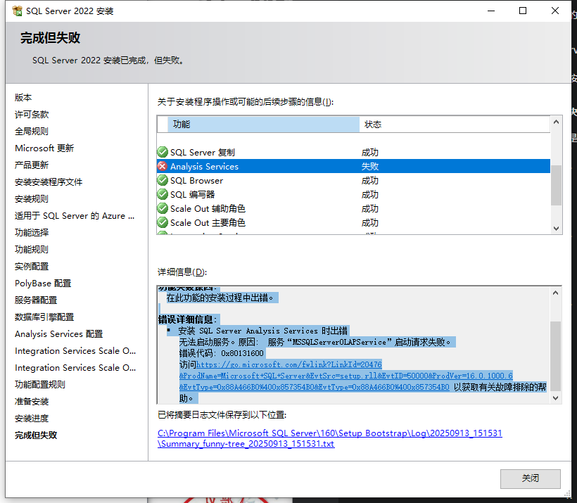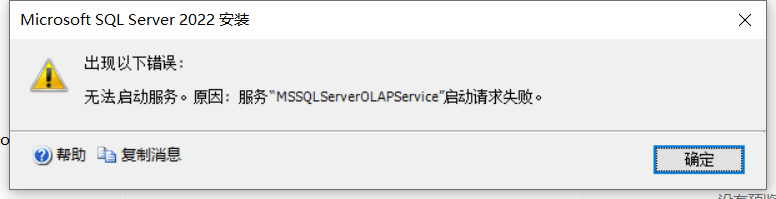 很简单,遇到服务“MSSQLServerOLAPService”启动请求失败,我有两个解决方案,一个有效且简便,一个是我好奇为什么他会报错从而探寻出来的解决方案