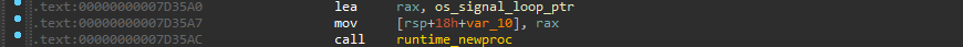 这里执行了go loop(),由于没有参数此处newproc只被传入了函数指针这一个参数,否则会传入继续传入函数所需的参数,在分析时直接将函数作为在新的线程里执行即可。