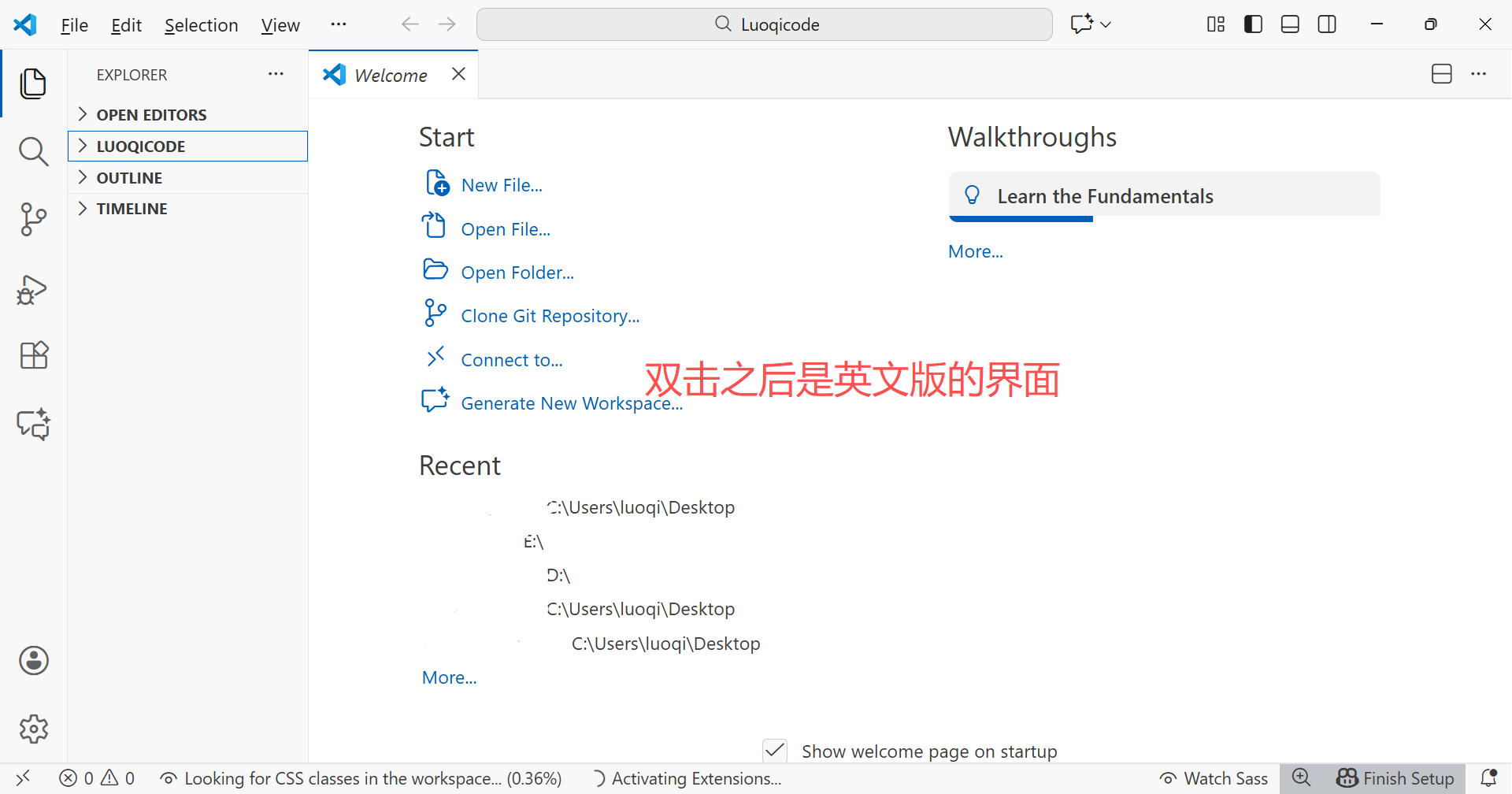 安装好之后,桌面上有一个vscode图标,双击即可运行