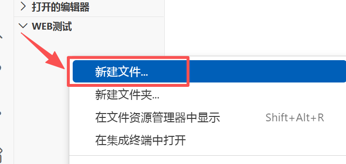 3.点击空白处,鼠标右键,然后选择“新建文件”,文件名为 "index.html"