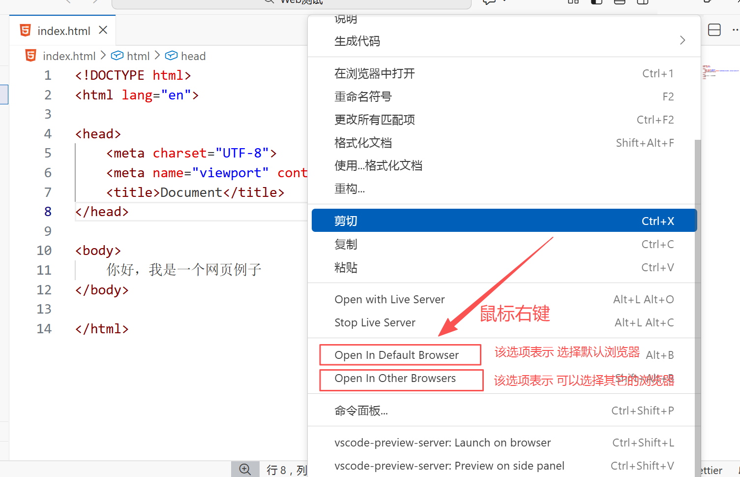 接下来就是运行这个页面,这里我选择了“Open In Other Browsers”,具体如下: