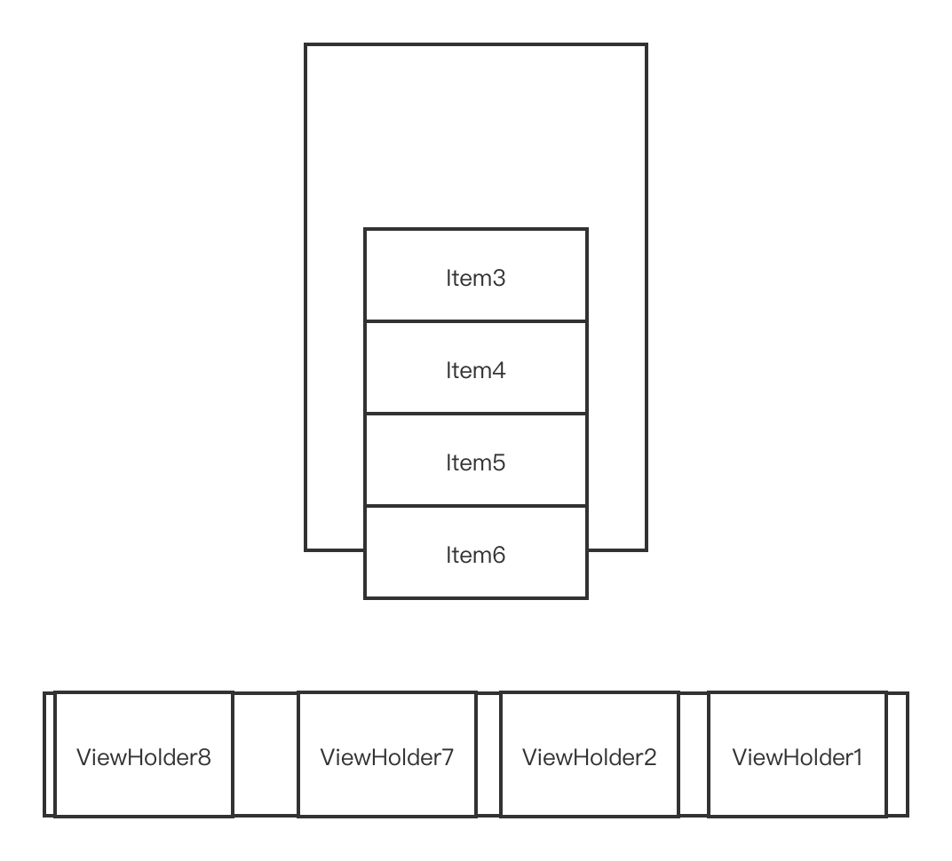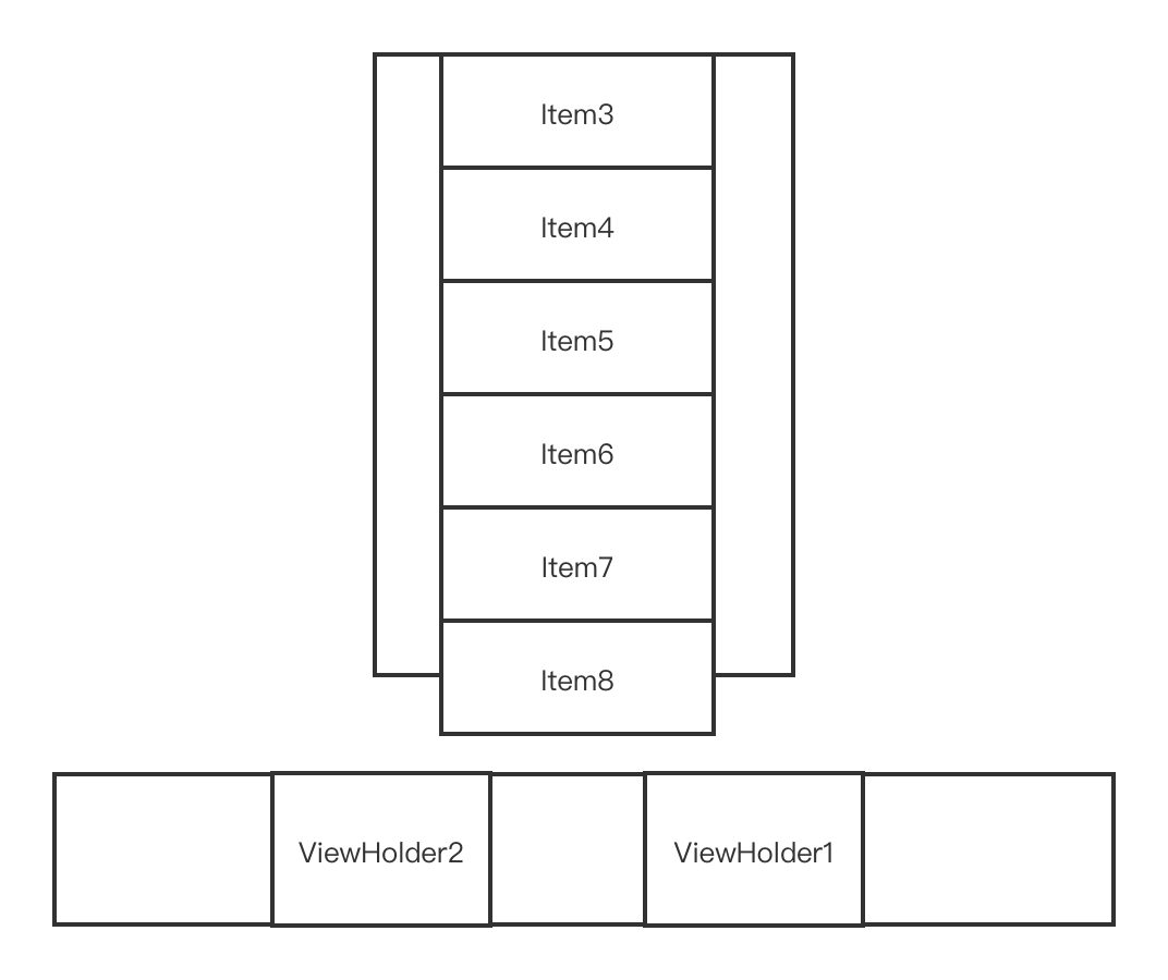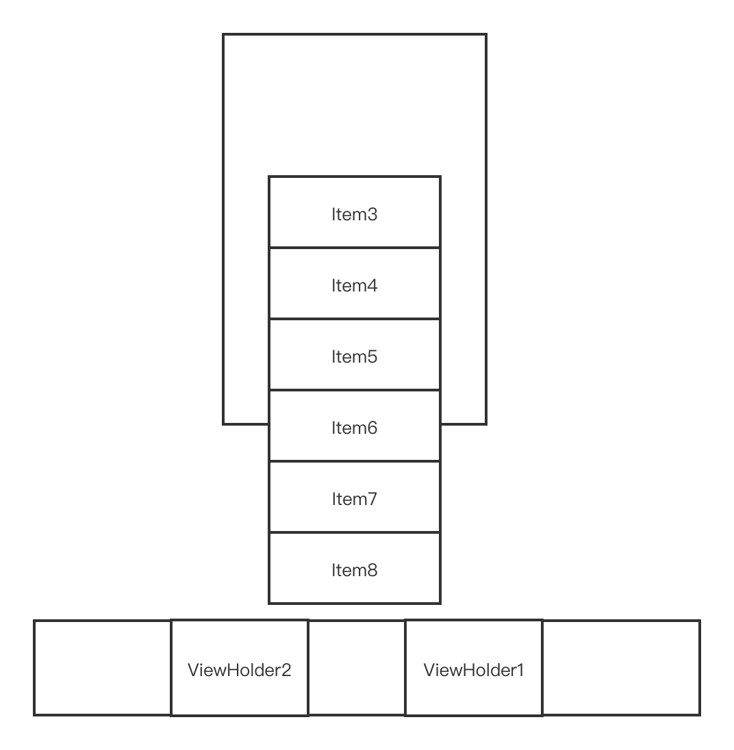 从锚点Item3处往下填充,填充到Item6为止,就没有足够的距离了,mAttachedScrap只剩下ViewHolder8,ViewHolder7,ViewHolder2,ViewHolder1