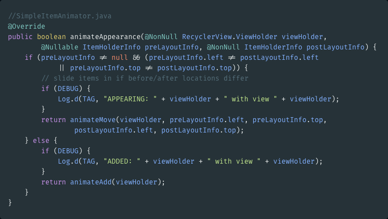 4.3.8.1 SimpleItemAnimator#animateAppearance