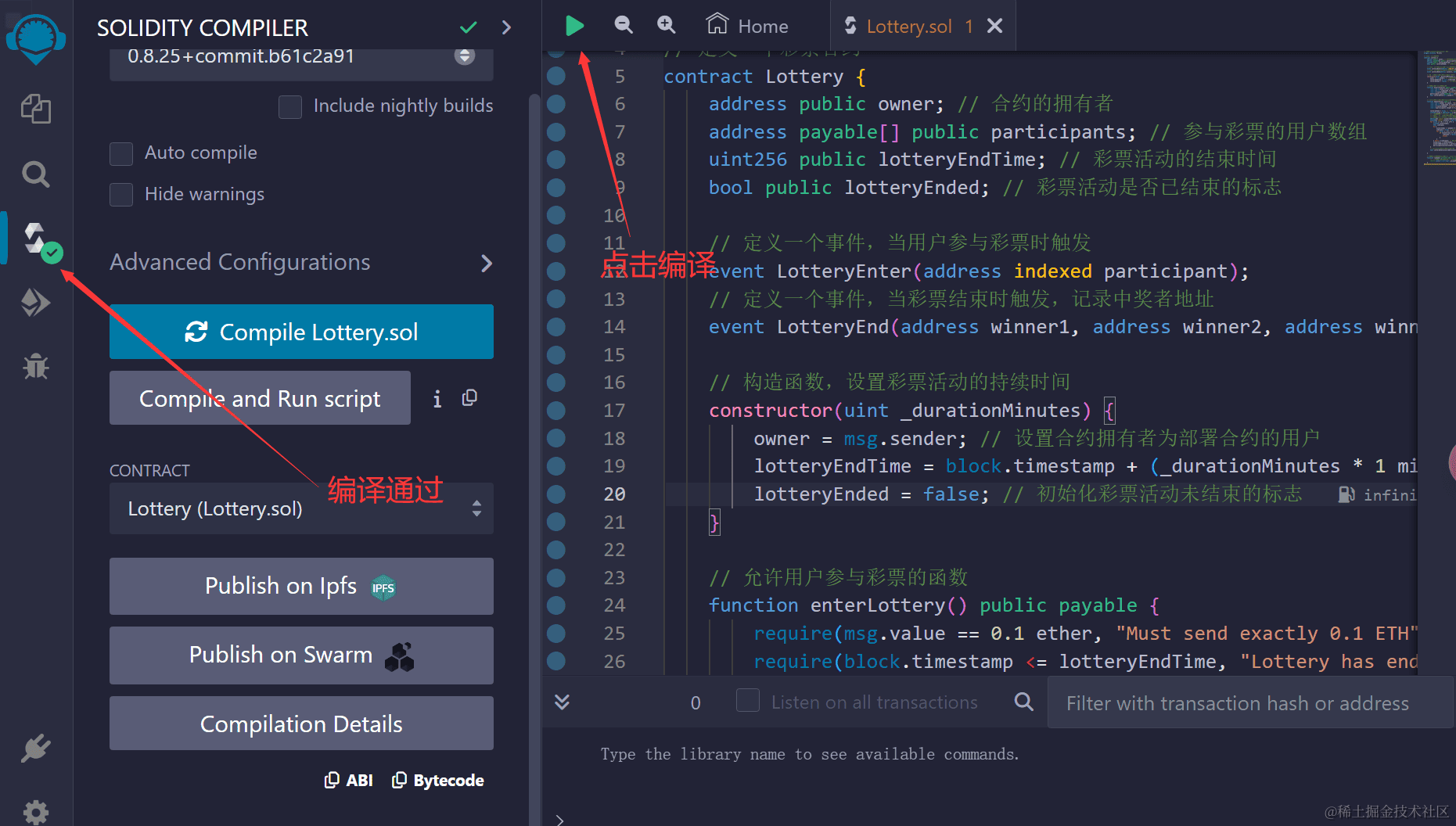 本篇教程为在以太坊区块链上发布一个智能彩票合约,活动期间用户可充值一定金额的以太币到合约地址,活动结束进行开奖,随机从参与用户中抽取3人,平分奖池奖金。(分为上下两篇)(本篇为下)