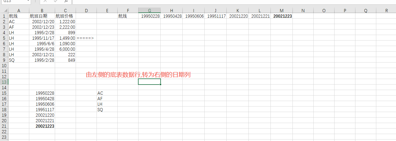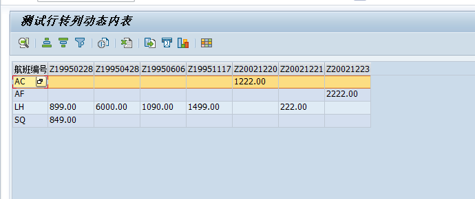 *&---------------------------------------------------------------------* *& Report ZTEXT_HZL *& *&---------------------------------------------------------------------* *& *& *&---------------------------------------------------------------------* report ztext_hzl. types :begin of typ_date, fldate type sflight-fldate, end of typ_date. data: gt_date type table of typ_date, gs_date type typ_date, gt_sflight type table of sflight, gs_sflight type sflight. data:gt_components type abap_component_tab, gs_component type abap_componentdescr, gr_structdesc type ref to cl_abap_structdescr, gr_tabledesc type ref to cl_abap_tabledescr. field-symbols: <fs_table> type standard table , <fs_line> type any, <fs_value> type any. start-of-selection. "创建动态内表 perform frm_create_dynamic. "填充数据 perform frm_move_data. "输出alv perform frm_display_alv. *&---------------------------------------------------------------------* *& Form FRM_CREATE_DYNAMIC *&---------------------------------------------------------------------* * text *----------------------------------------------------------------------* * --> p1 text * <-- p2 text *----------------------------------------------------------------------* form frm_create_dynamic . data:lr_table type ref to data, lr_line type ref to data. data: lv_field type string. select * from sflight into corresponding fields of table gt_sflight. sort gt_sflight by carrid. loop at gt_sflight into gs_sflight. move-corresponding gs_sflight to gs_date. collect gs_date into gt_date. endloop. sort gt_date by fldate. perform frm_com_tab using 'CARRID' 'S_CARR_ID' changing gt_components. loop at gt_date into gs_date. lv_field = 'Z' && gs_date-fldate. perform frm_special_char_conver using 'X' changing lv_field. "字符替换 这里没有用,但是动态内表字段不支持一些特殊字符,保留这个字符替换 perform frm_com_tab using lv_field 'STRING' changing gt_components. endloop. if gt_components is not initial. gr_structdesc = cl_abap_structdescr=>create( gt_components ). gr_tabledesc = cl_abap_tabledescr=>create( p_line_type = gr_structdesc p_table_kind = cl_abap_tabledescr=>tablekind_std ). endif. create data lr_table type handle gr_tabledesc. assign lr_table->* to <fs_table>. create data lr_line type handle gr_structdesc. assign lr_line->* to <fs_line>. endform. " FRM_CREATE_DYNAMIC *&---------------------------------------------------------------------* *& Form FRM_COM_TAB *&---------------------------------------------------------------------* * text *----------------------------------------------------------------------* * -->P_0066 text * -->P_0067 text * <--P_LT_COM_TAB text *----------------------------------------------------------------------* form frm_com_tab using u_name u_type changing ct_com_tab type abap_component_tab. data:ls_com_tab type abap_componentdescr. ls_com_tab-name = u_name. ls_com_tab-type ?= cl_abap_datadescr=>describe_by_name( u_type ). append ls_com_tab to ct_com_tab. endform. " FRM_COM_TAB *&---------------------------------------------------------------------* *& Form FRM_SPECIAL_CHAR_CONVER *&---------------------------------------------------------------------* * text *----------------------------------------------------------------------* * -->P_0088 text * <--P_LV_FIELD text *----------------------------------------------------------------------* form frm_special_char_conver using uv_flag changing cv_field. case uv_flag. when 'X'. replace all occurrences of '/' in cv_field with '_'. when ''. replace all occurrences of '_' in cv_field with '/'. when others. endcase. endform. " FRM_SPECIAL_CHAR_CONVER *&---------------------------------------------------------------------* *& Form FRM_MOVE_DATA *&---------------------------------------------------------------------* * text *----------------------------------------------------------------------* * --> p1 text * <-- p2 text *----------------------------------------------------------------------* form frm_move_data . data: lv_field type string. loop at gt_sflight into gs_sflight. assign component 'CARRID' of structure <fs_line> to <fs_value>. if <fs_value> is assigned. <fs_value> = gs_sflight-carrid. unassign <fs_value>. endif. lv_field = 'Z'&& gs_sflight-fldate. assign component lv_field of structure <fs_line> to <fs_value>. if <fs_value> is assigned. <fs_value> = gs_sflight-price. unassign <fs_value>. endif. "如果是最后一个此航班号出现才附加进表里 at end of carrid. append <fs_line> to <fs_table>. clear:<fs_line>. endat. endloop. endform. " FRM_MOVE_DATA *&---------------------------------------------------------------------* *& Form FRM_DISPLAY_ALV *&---------------------------------------------------------------------* * text *----------------------------------------------------------------------* * --> p1 text * <-- p2 text *----------------------------------------------------------------------* form frm_display_alv . data:lr_alv type ref to cl_salv_table, lx_msg type ref to cx_salv_msg, lr_columns type ref to cl_salv_columns_table, lr_column type ref to cl_salv_column_table, lt_cols type salv_t_column_ref, ls_cols type salv_s_column_ref, lv_short_text type scrtext_s, lv_text type string. try . cl_salv_table=>factory( importing r_salv_table = lr_alv changing t_table = <fs_table> ). lr_alv->get_columns( )->set_optimize( abap_true ). lr_alv->get_functions( )->set_all( abap_true ). lr_alv->get_display_settings( )->set_striped_pattern( abap_true ). "修改列名 lr_columns = lr_alv->get_columns( ). lt_cols = lr_columns->get( ). loop at lt_cols into ls_cols. case ls_cols-columnname. when 'CARRID'. ls_cols-r_column->set_short_text( '航班编号' ). when others. lv_short_text = ls_cols-columnname. ls_cols-r_column->set_short_text( lv_short_text ). endcase. endloop. lr_alv->display( ). catch cx_salv_msg into lx_msg. lv_text = lx_msg->get_text( ). message lv_text type 'E'. endtry. endform. " FRM_DISPLAY_ALV