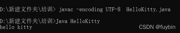 例如本示例中,输入javac -encoding UTF-8 HelloKitty.java,编译成功,完美运行。
