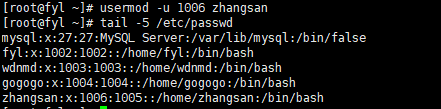 -u <新UID>:修改用户的 UID。例如usermod -u 1006 zhangsan,将 zhangsan 的 UID 改为 1006。