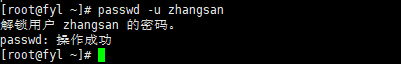 -u:解锁被锁定的用户账号。如passwd -u zhangsan,解锁 zhangsan 账号。