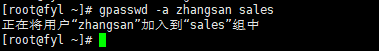 添加成员:gpasswd -a 用户名 组名,将用户加入指定组。例如gpasswd -a zhangsan sales,把 zhangsan 加入 sales 组。