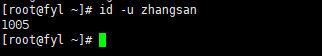 -u:仅显示 UID。例如id -u zhangsan,输出 zhangsan 的 UID。