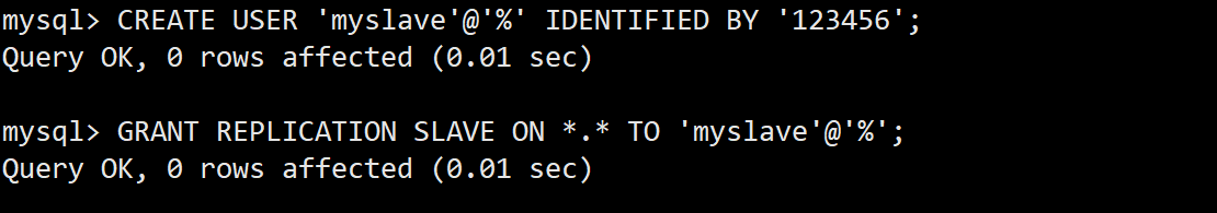 CREATE USER 'myslave'@'%' IDENTIFIED BY '123456';