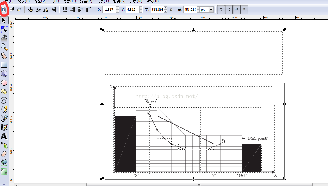 c、文件->文档属性->点开缩放页面到内容的小加号->缩放页面到绘图或选区