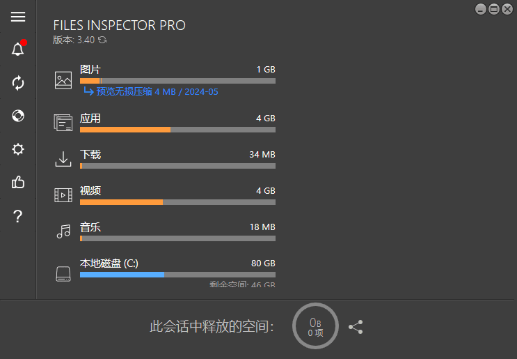 Files Inspector 是一款专业的磁盘空间分析工具,通过直观的可视化图表展示磁盘使用情况,帮助用户快速定位大文件、冗余数据及重复内容。