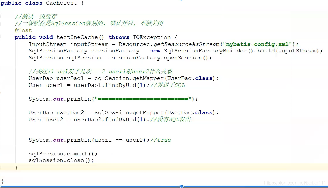 一级缓存是sqlSession级别的,默认开启,不能关闭。