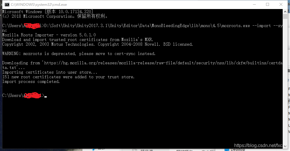 CMD 中 D:\Program Files\Unity_2017_3_1_f1\Editor\Data\MonoBleedingEdge\lib\mono\4.5\mozroots.exe --import --sync
