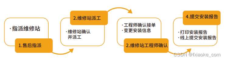 该企业售后全流程包含派工-备件申请-现场服务-服务报告-服务评价-客户回访-开票收款等多个步骤。整个售后流程也涉及多个部门,要实现全流程的精细化管理单纯靠人工是无法完成的,需要借助数字化工具。