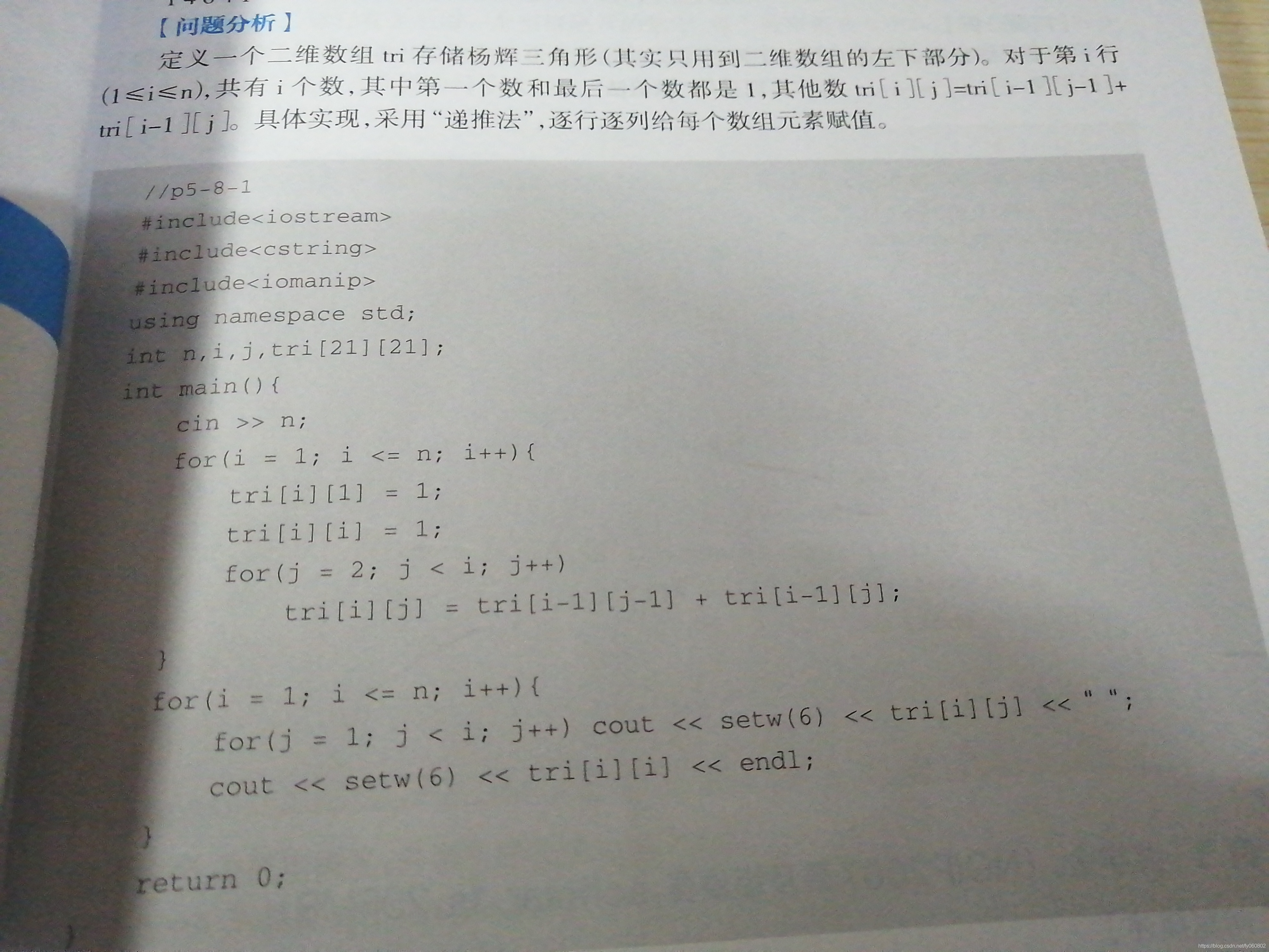 问题描述:输入正整数n输出杨辉三角形的前n行。