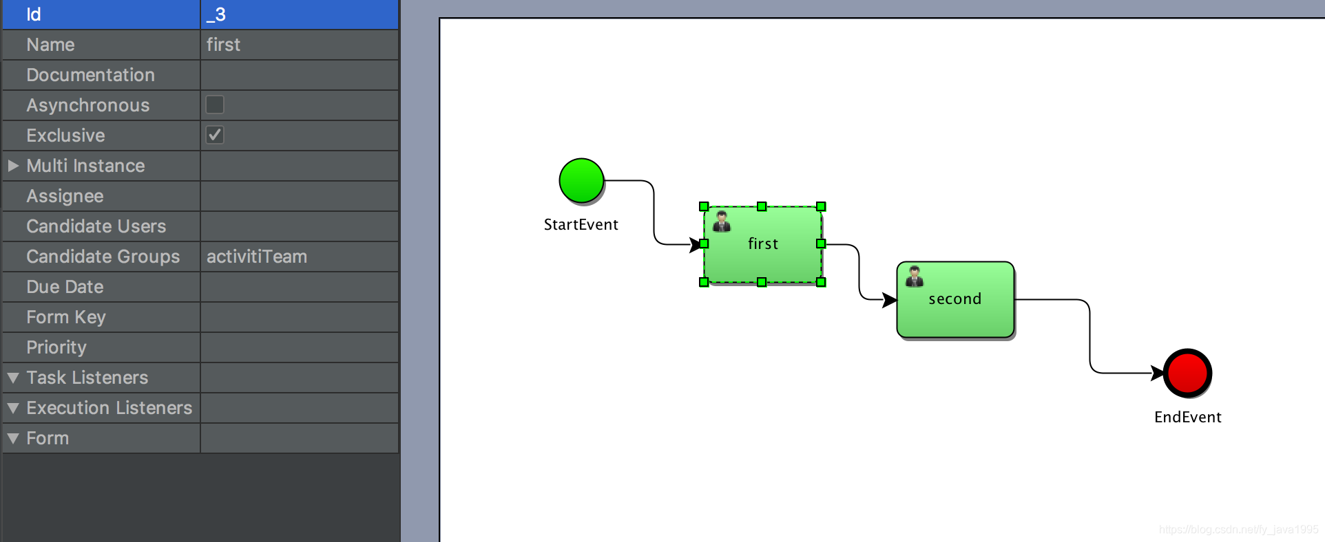 该实例的流程图中,已经指定两个步骤的指派的组。我们可以用指定组中的用户登录去查询任务并完成任务。