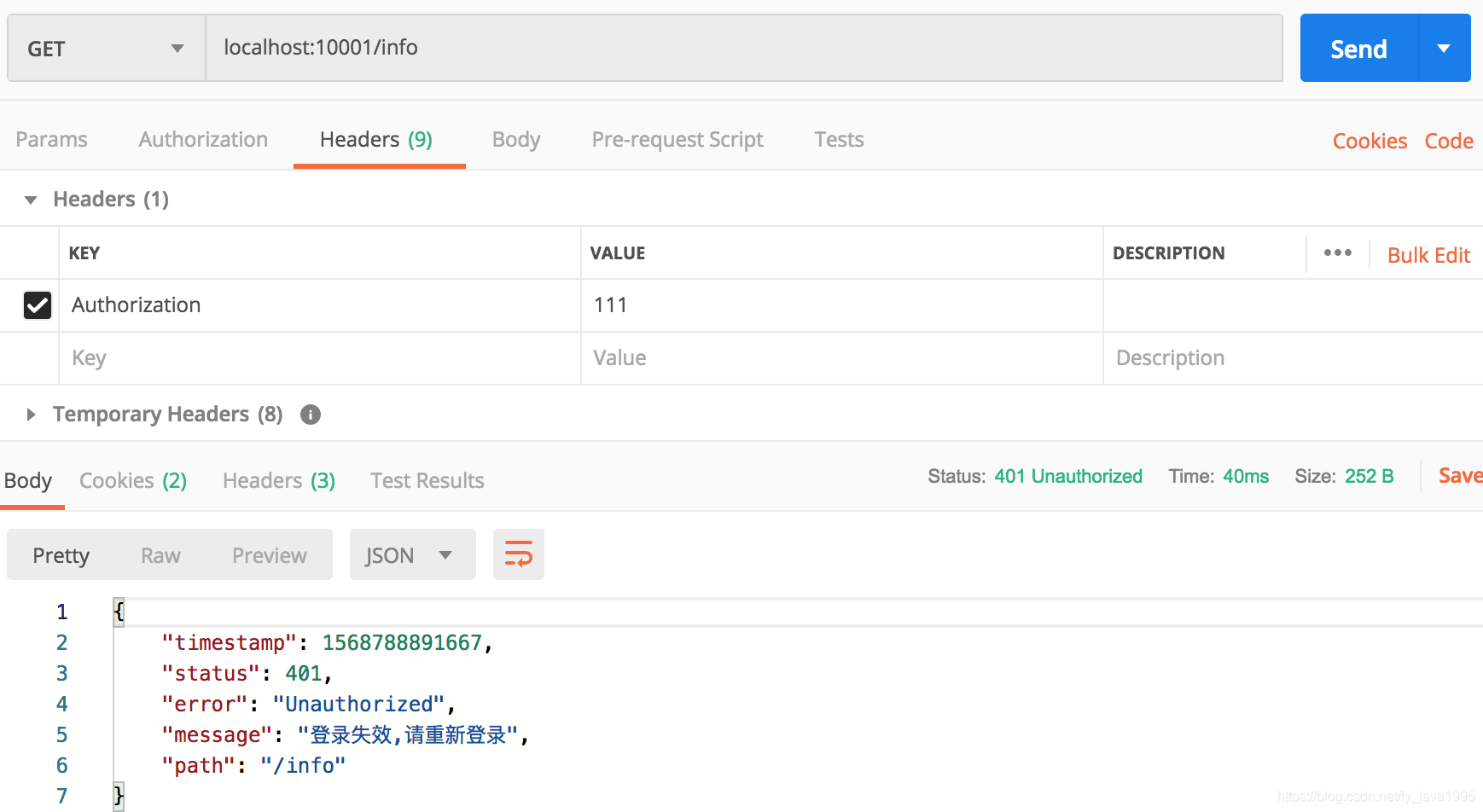 这里我们约定前端请求后端服务时需要添加头信息Authorization ,内容为Test:+空格+token