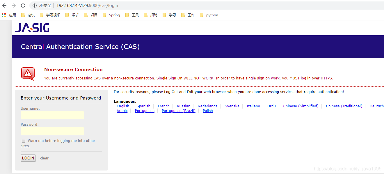 这里我的虚拟机ip为192.168.142.129,引入的项目为CAS单点登陆的开源项目