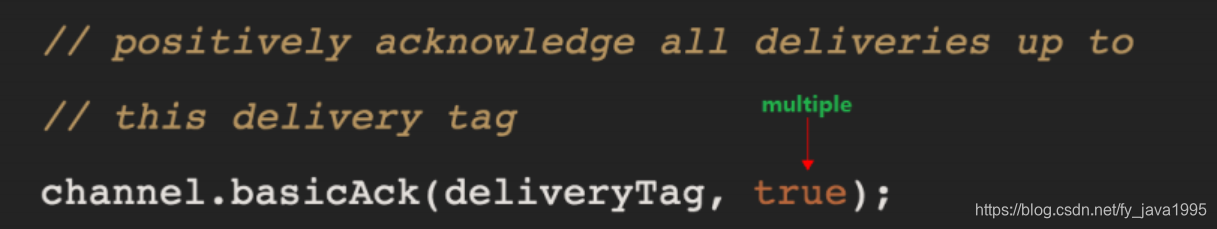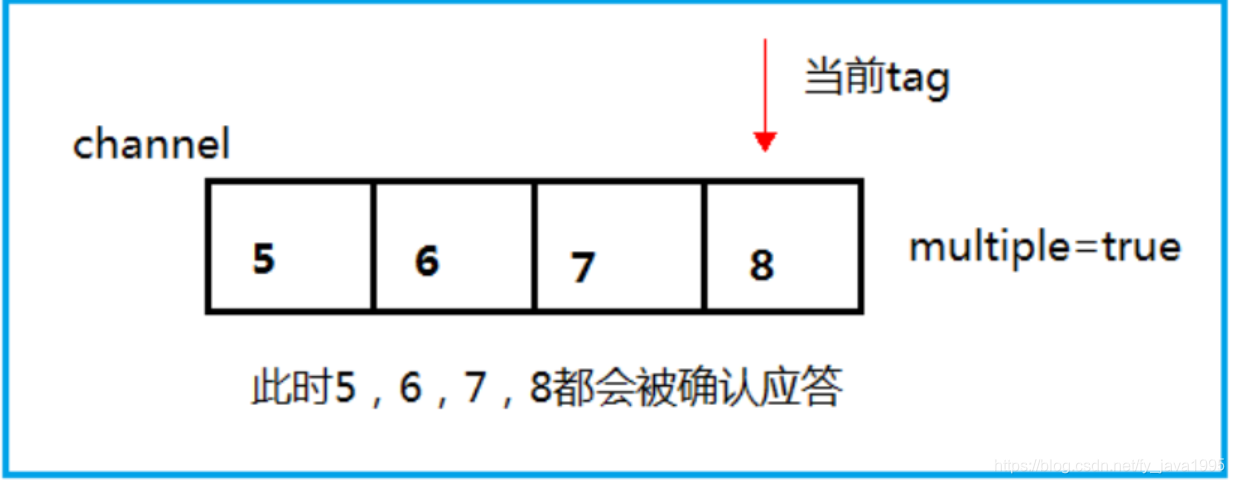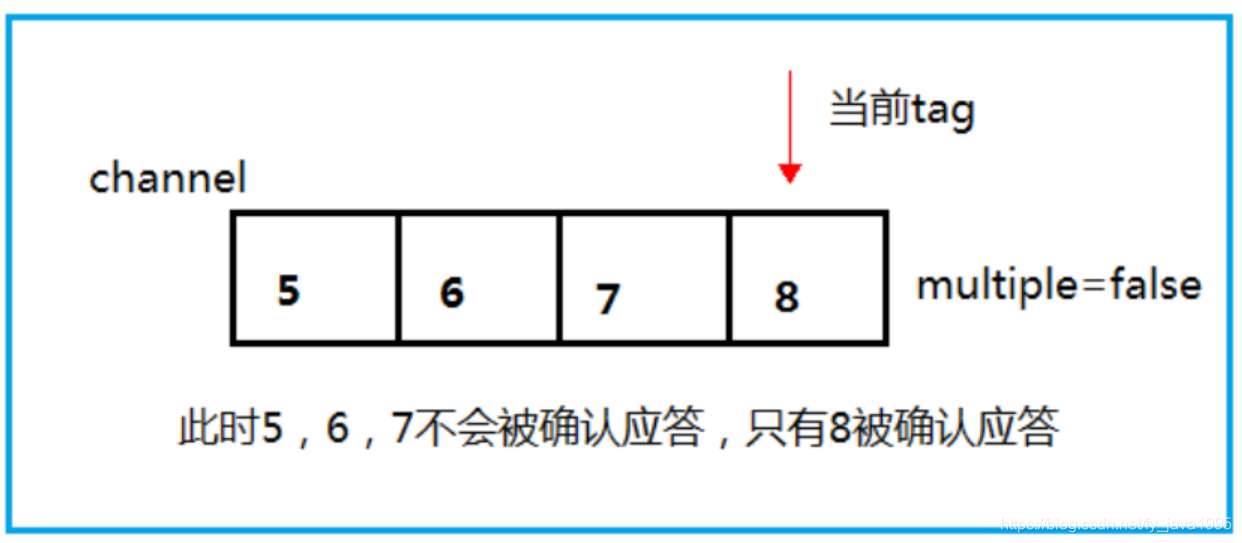 true 代表批量应答 channel 上未应答的消息,比如说 channel 上有传送 tag 的消息 5,6,7,8 当前 tag 是 8 那么此时5-8 的这些还未应答的消息都会被确认收到消息应答