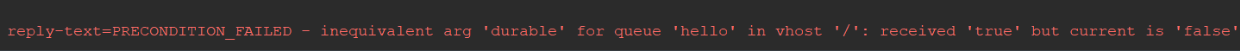 但是需要注意的就是如果之前声明的队列不是持久化的,需要把原先队列先删除,或者重新创建一个持久化的队列,不然就会出现错误。