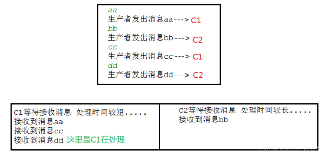 正常情况下消息发送方发送两个消息 C1 和 C2 分别接收到消息并进行处理