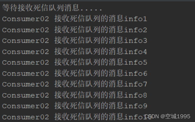 System.out.println("Consumer02 接收死信队列的消息" + message);