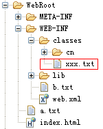 获取b.txt资源流:InputStream in = servletContext.getResourceAsStream(“/WEB-INF/b.txt”);