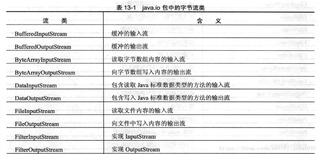 对于读/写文件,两个最常用的流是FileInputStream和FileOutputStream,这两个类创建与文件链接的字节流。